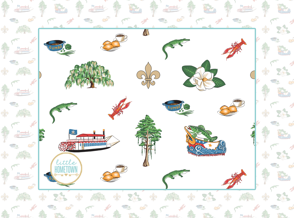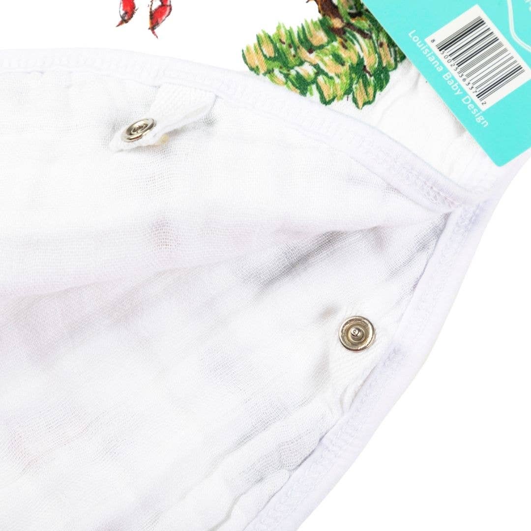 Celebrate Louisiana’s charm with these versatile burp cloths and bibs. Super soft, thick, and extra large; they wrap fully around for all-day comfort. Perfect as a burp cloth in the early months, it converts to a full-coverage bib when solid foods are introduced. A thoughtful and practical gift for any parent! They measure 10" by 24" and are made from a blend of bamboo rayon and cotton.