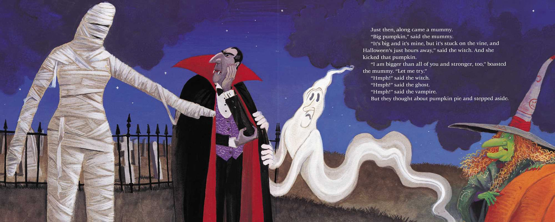 This not-so-scary Halloween classic by Erica Silverman, with illustrations by S.D. Schindler, returns in a refreshed edition full of seasonal fun. When a witch grows the biggest pumpkin ever, she dreams of turning it into a delicious pie. But the pumpkin is far too big to move! The ghost tries, then the vampire, then the mummy—but none of them can budge it. Just when it seems impossible, a tiny bat swoops in with a clever idea that saves the day. With its playful cast of spooky creatures, rhythmic storytelling, and lighthearted humor, this tale shows that even the smallest helper can make the biggest difference.