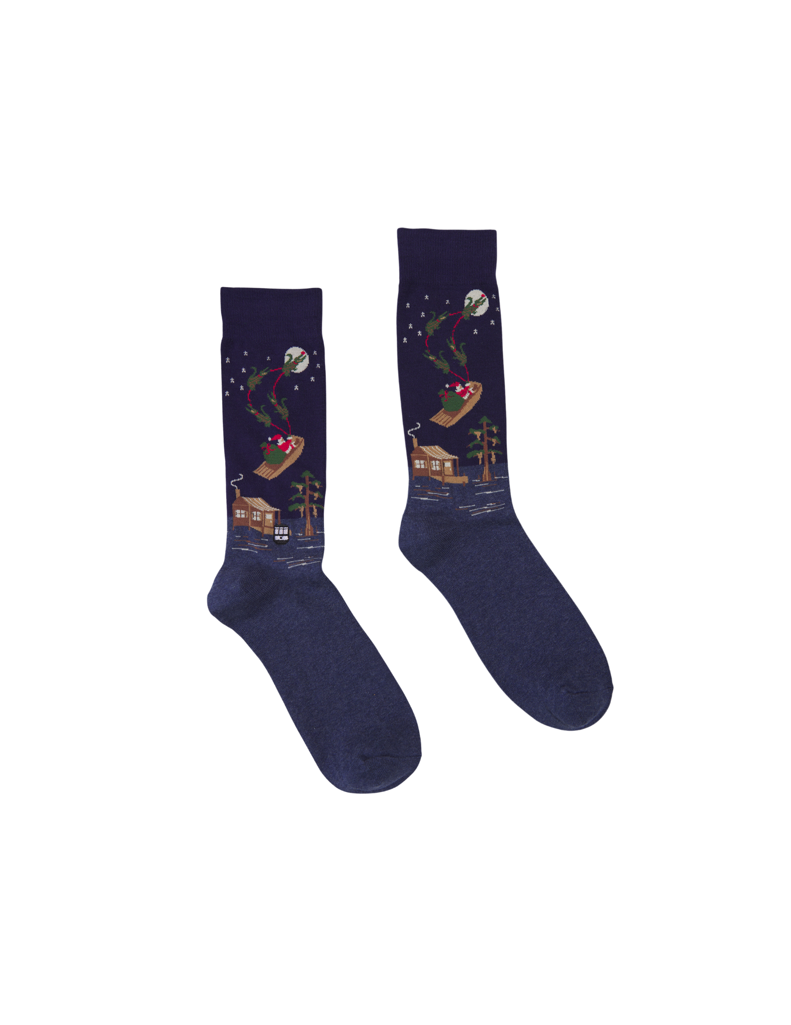 Celebrate the season with Bonfolk Cajun Christmas Socks, designed in New Orleans, LA. Made from premium combed cotton with a double cuff to stay up all day, they deliver comfort, quality, and festive Cajun cheer. 85% cotton, 13% nylon, 2% spandex.