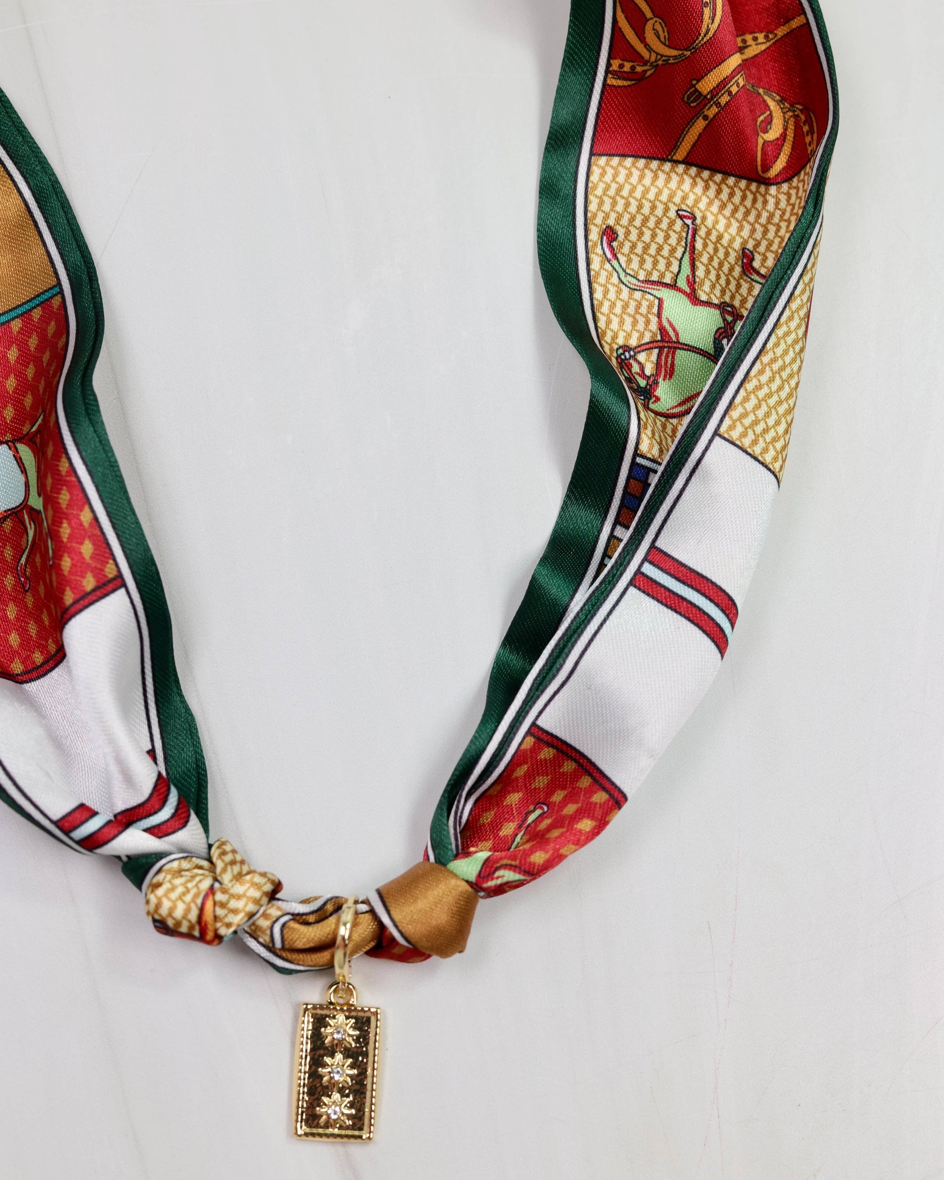 Turn heads with the Lillie Scarf Charm Necklace, a vibrant accessory crafted from silky-soft artificial silk. Effortlessly tied and full of personality, it brings color and movement to any ensemble. The dainty pendant measures 0.63” tall by 0.38” wide—just the right detail to make this piece feel playful yet polished.