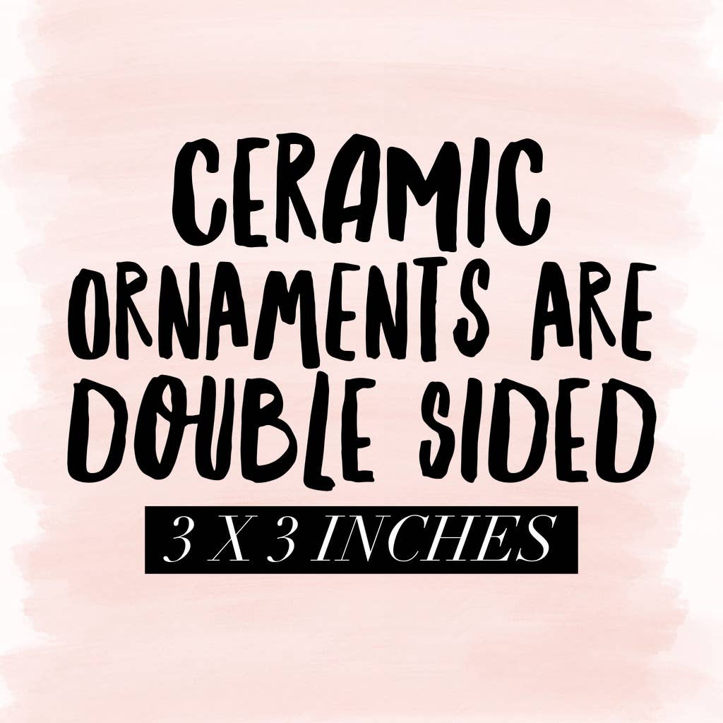 This funny Christmas ornament features Santa and Jesus with the phrase “We Saw That,” adding a playful touch to your holiday décor. Crafted from round ceramic with a gold string for hanging, it measures 3” by 3”. Don’t forget to shop the matching greeting card!